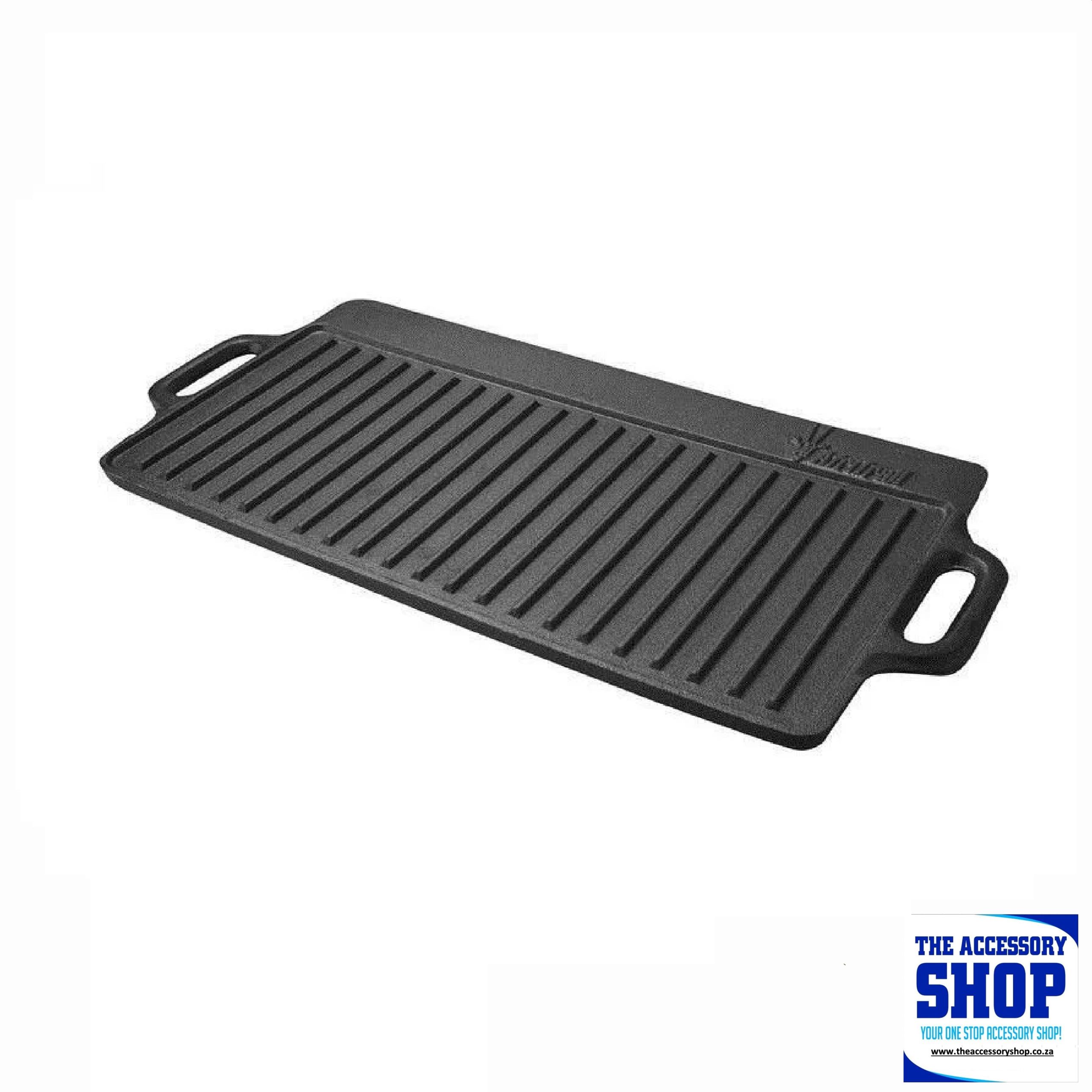The Afritrail Dual BBQ Grill Pan offers you a generous cooking area and both flat and ridged cooking surfaces for all sorts of meals at the campsite or at home. This dual sided cat iron pan from Afritrail offers flexible cooking options and a large usable cooking area. It’s made from durable cast iron for excellent thermal properties and has a smooth and a ridged grill side, so will cope with anything from fluffy pancakes to a juicy steak. Not dishwasher safe. Is not non stick.